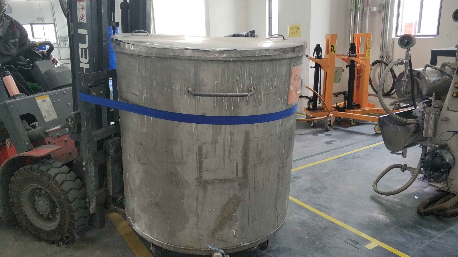● The binding strap is installed on the right side of the forklift guard rail frame (the right-hand side of the forklift driver).